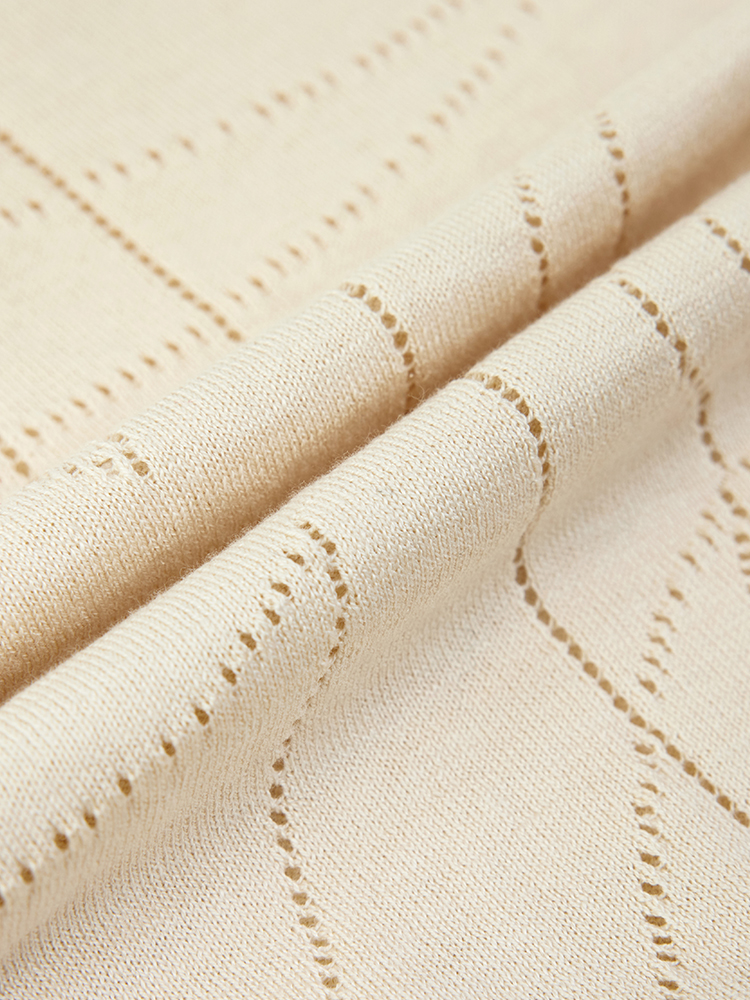 圆领短袖版型,简约大气。 单面挑洞组织,打造艺术几何图案。