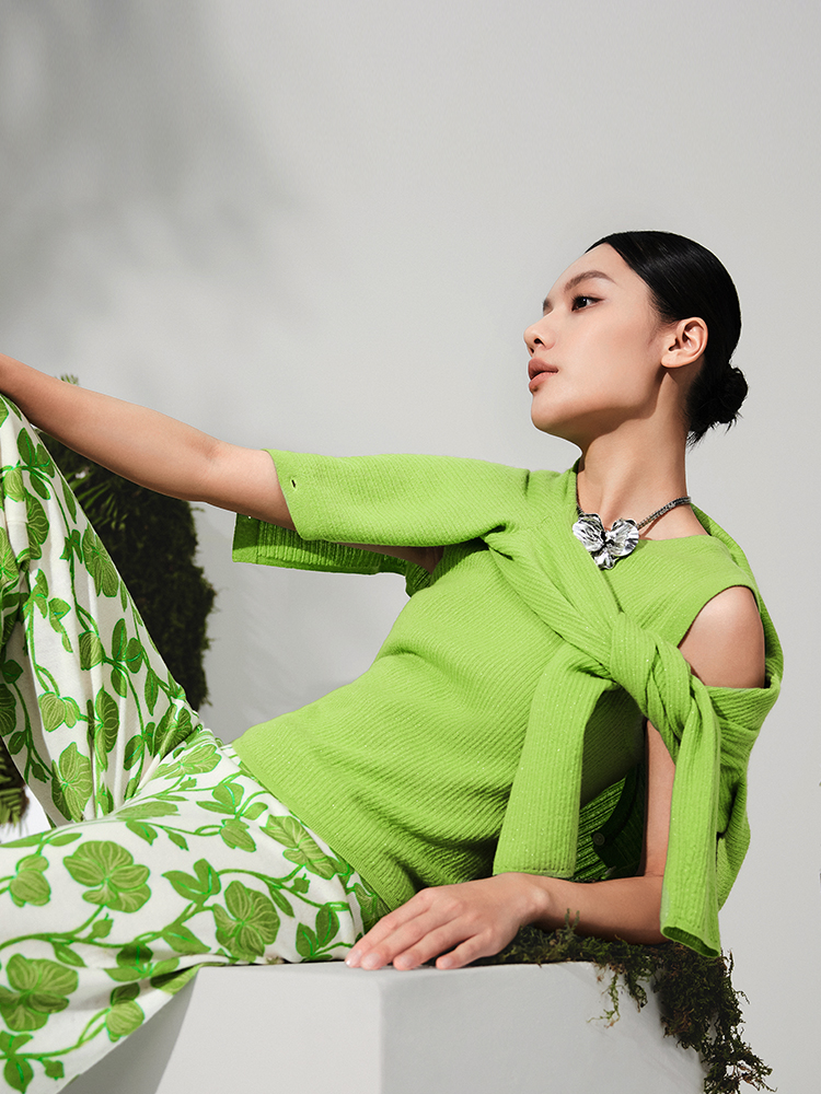 细腻的竖条纹针法,丰富视觉层次。 青芽绿色系,绽放生机与活力。