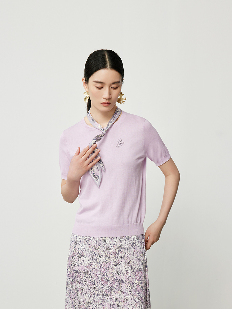 圆领短袖版型,简约大气。 蝴蝶刺绣翩翩起舞,绽放新意。